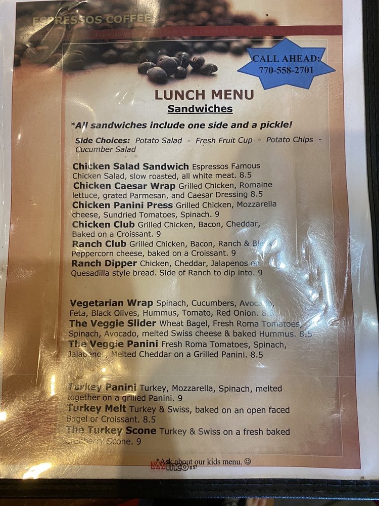 Espressos Coffee in Alpharetta is the go-to spot for coffee, breakfast, lunch, or dinner with a laid-back vibe and friendly service. The funky little coffee shop offers a variety of menu options, including croissant sandwiches, salted caramel lattes, and a great selection of pastries and sweets. Customers rave about the cozy ambiance, complete with a record player and comfy chairs, making it a perfect spot for a quick friend coffee date or a leisurely meal. With options for takeout, delivery, and catering, Espressos Coffee caters to a diverse crowd, including groups, kids, and even furry friends with outdoor seating. Stop by and enjoy the exceptional service, delicious food, and quirky old-school cafe vibes that make Espressos Coffee a must-visit destination for any coffee lover.